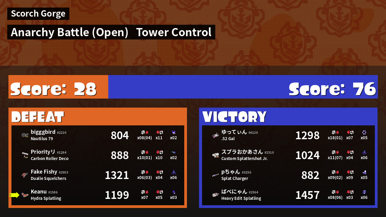 | Mode | Tower Control - Anarchy Battle (Open) | ||