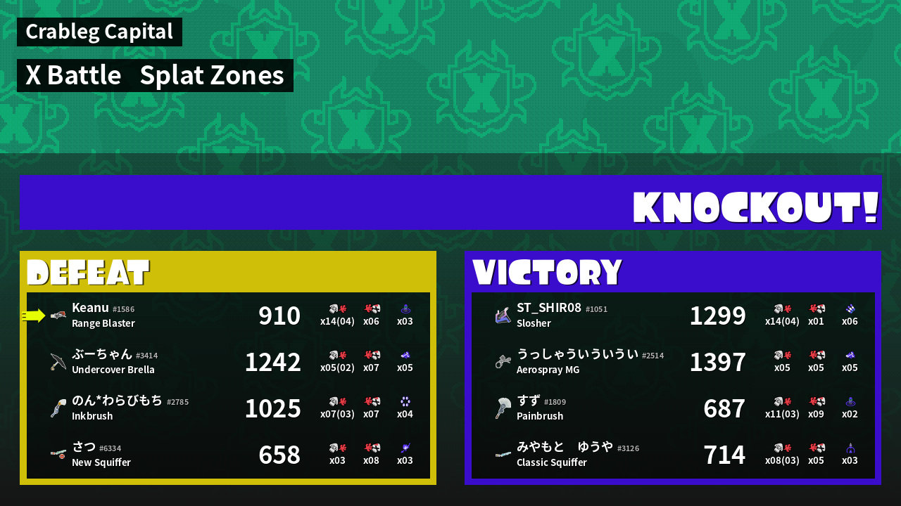 | Mode | Splat Zones - X Battle | ||