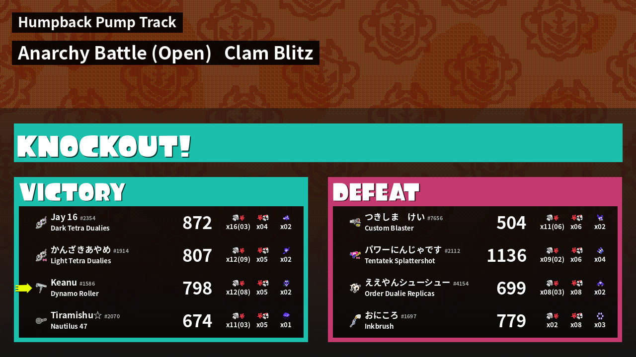 | Mode | Clam Blitz - Anarchy Battle (Open) | ||