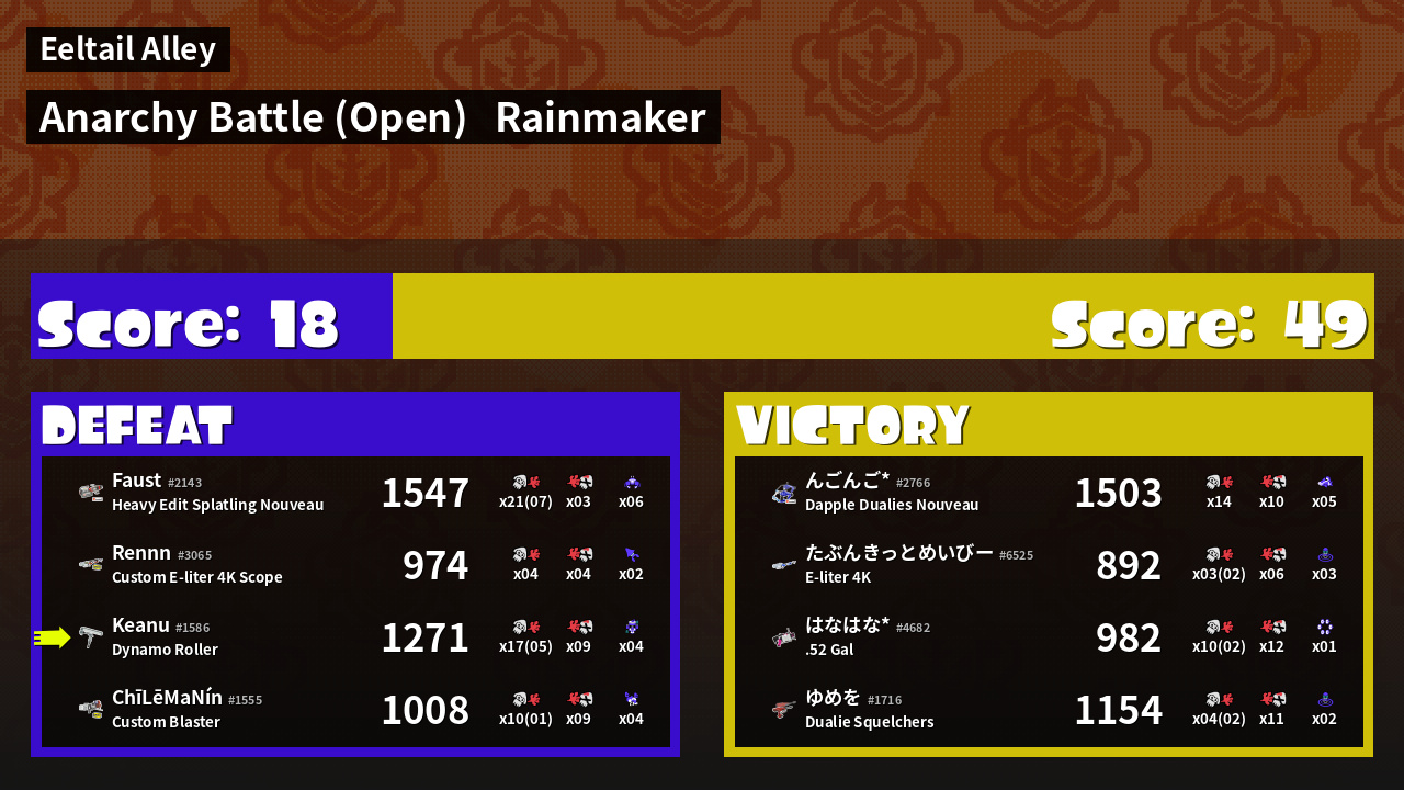 | Mode | Rainmaker - Anarchy Battle (Open) | ||