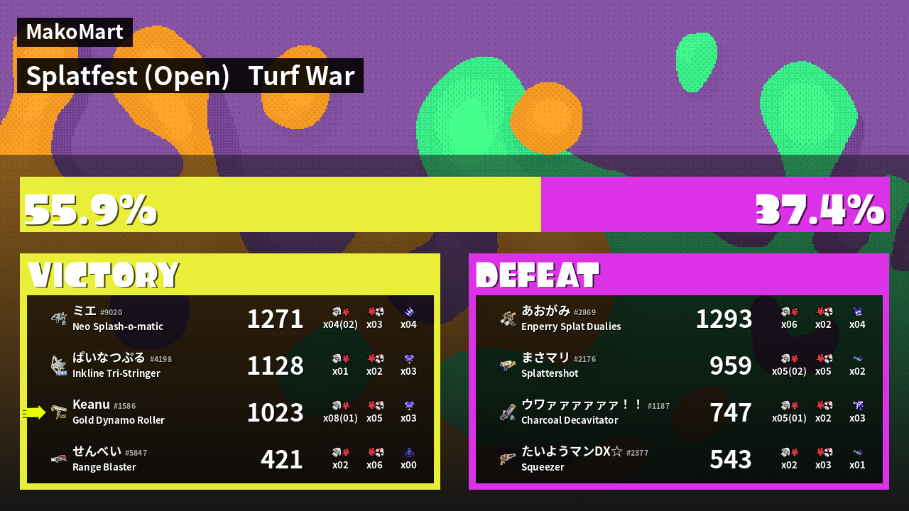 | Medals | #1 Overall Splatter #1 Enemy-Base Inker #1 Enemy Splatter | ||