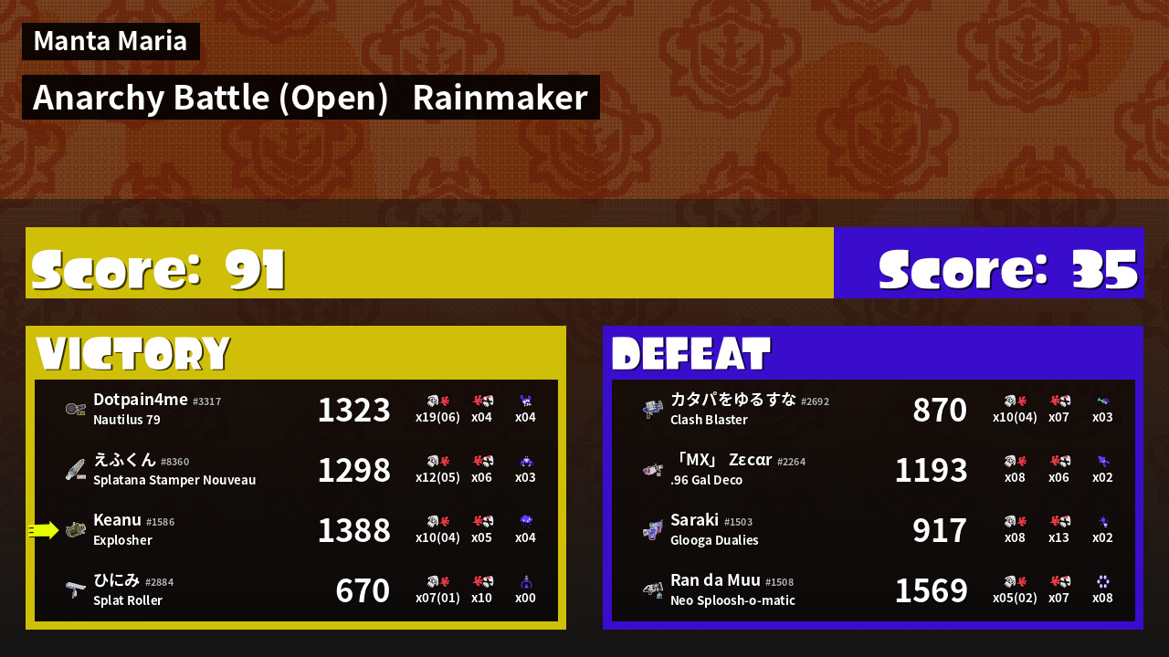 | Mode | Rainmaker - Anarchy Battle (Open) | ||
