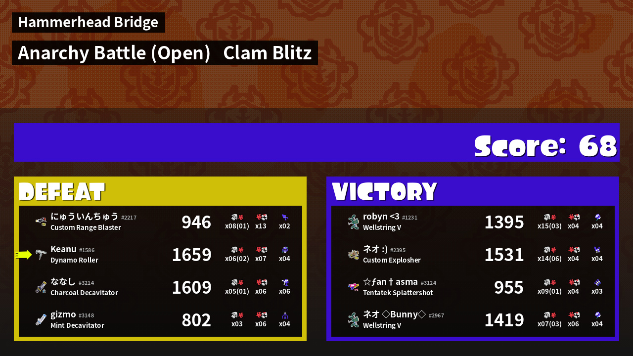 | Mode | Clam Blitz - Anarchy Battle (Open) | ||