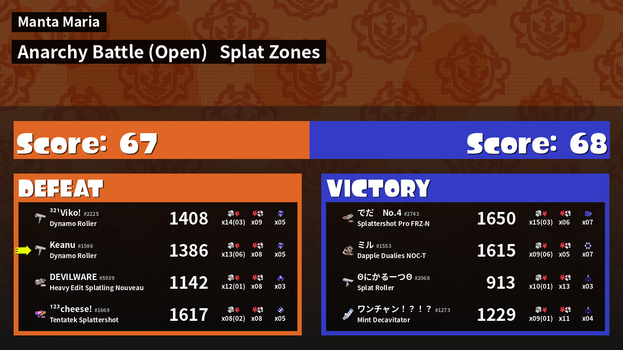 | Mode | Splat Zones - Anarchy Battle (Open) | ||