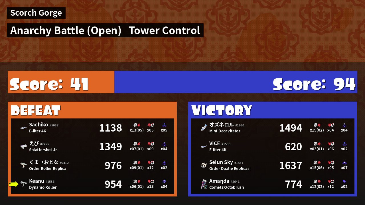 | Mode | Tower Control - Anarchy Battle (Open) | ||