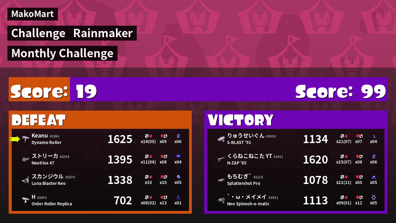| Medals | #1 Overall Splatter #1 Turf Inker #1 Splat Assister | ||