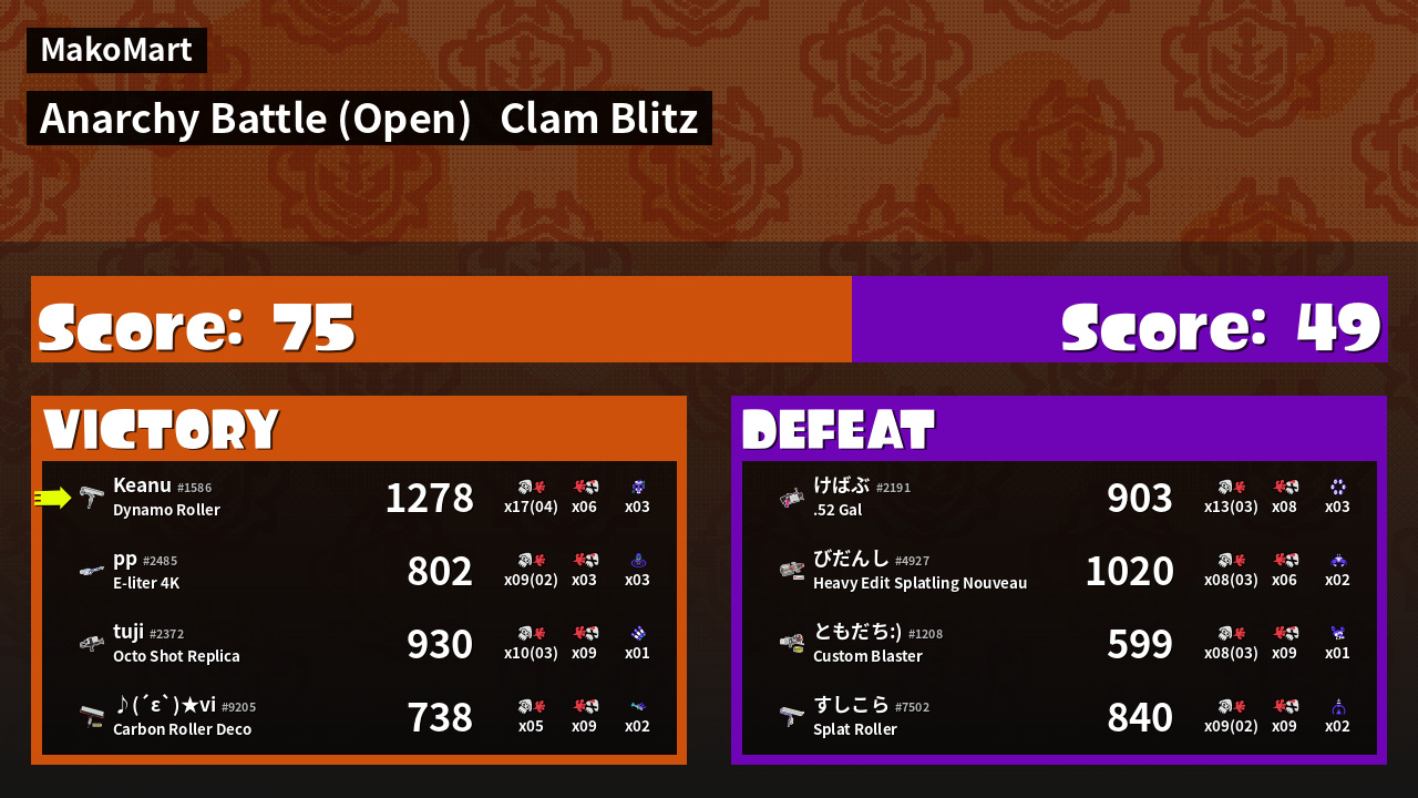 | Mode | Clam Blitz - Anarchy Battle (Open) | ||