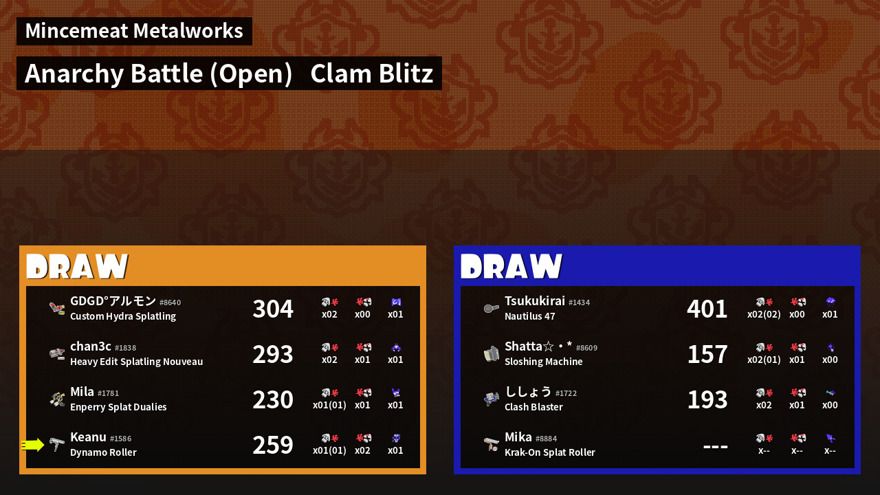 | Mode | Clam Blitz - Anarchy Battle (Open) | ||