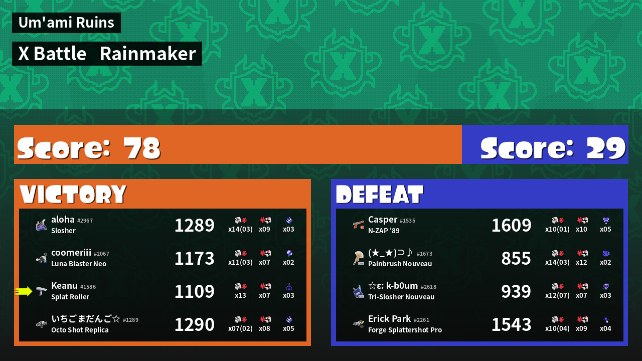 | Mode | Rainmaker - X Battle | ||