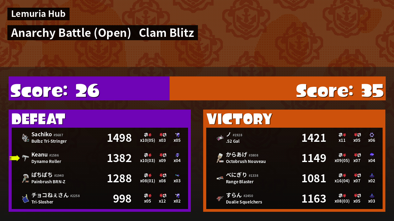 | Mode | Clam Blitz - Anarchy Battle (Open) | ||