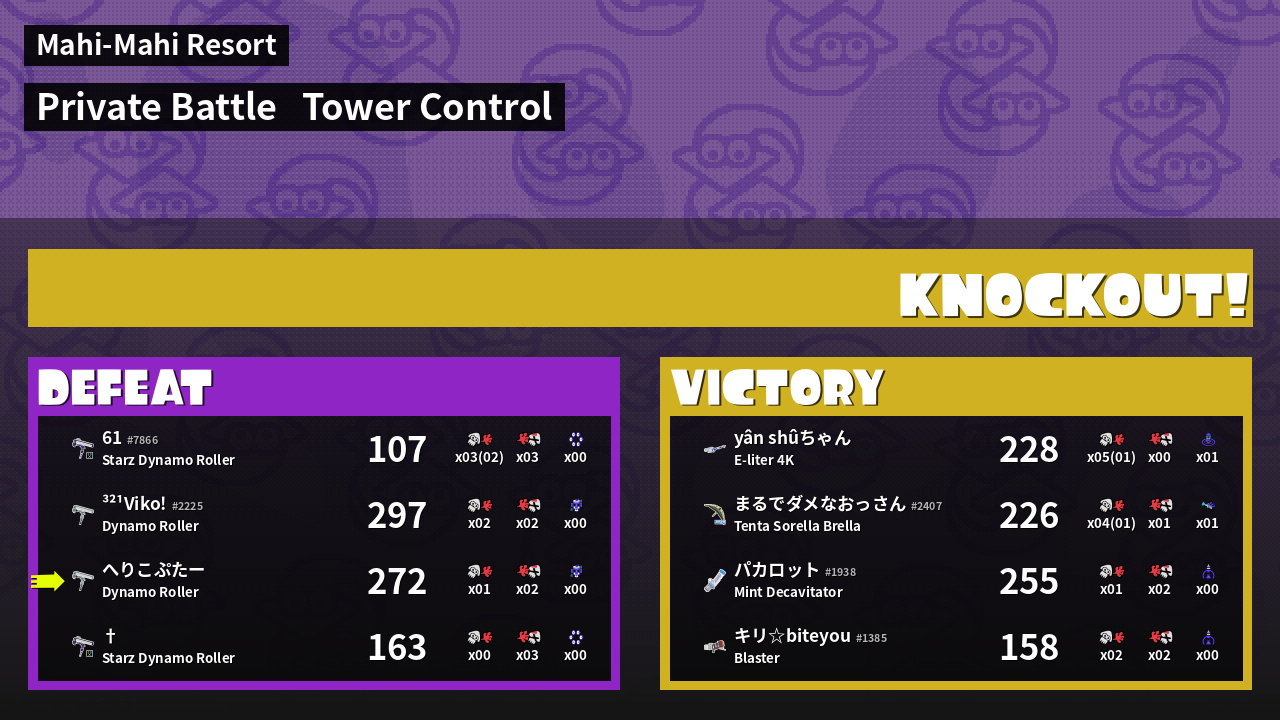 | Weapon | Dynamo Roller ( Sprinkler / Tacticooler) | ||