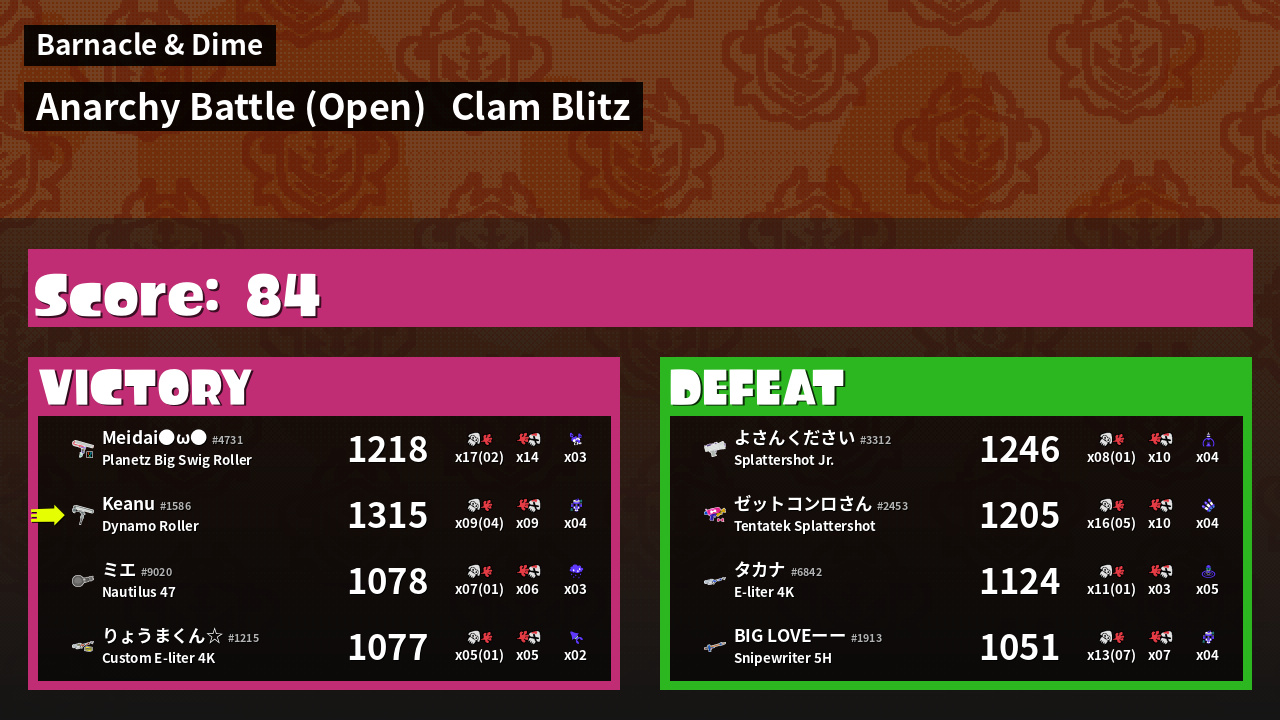 | Mode | Clam Blitz - Anarchy Battle (Open) | ||