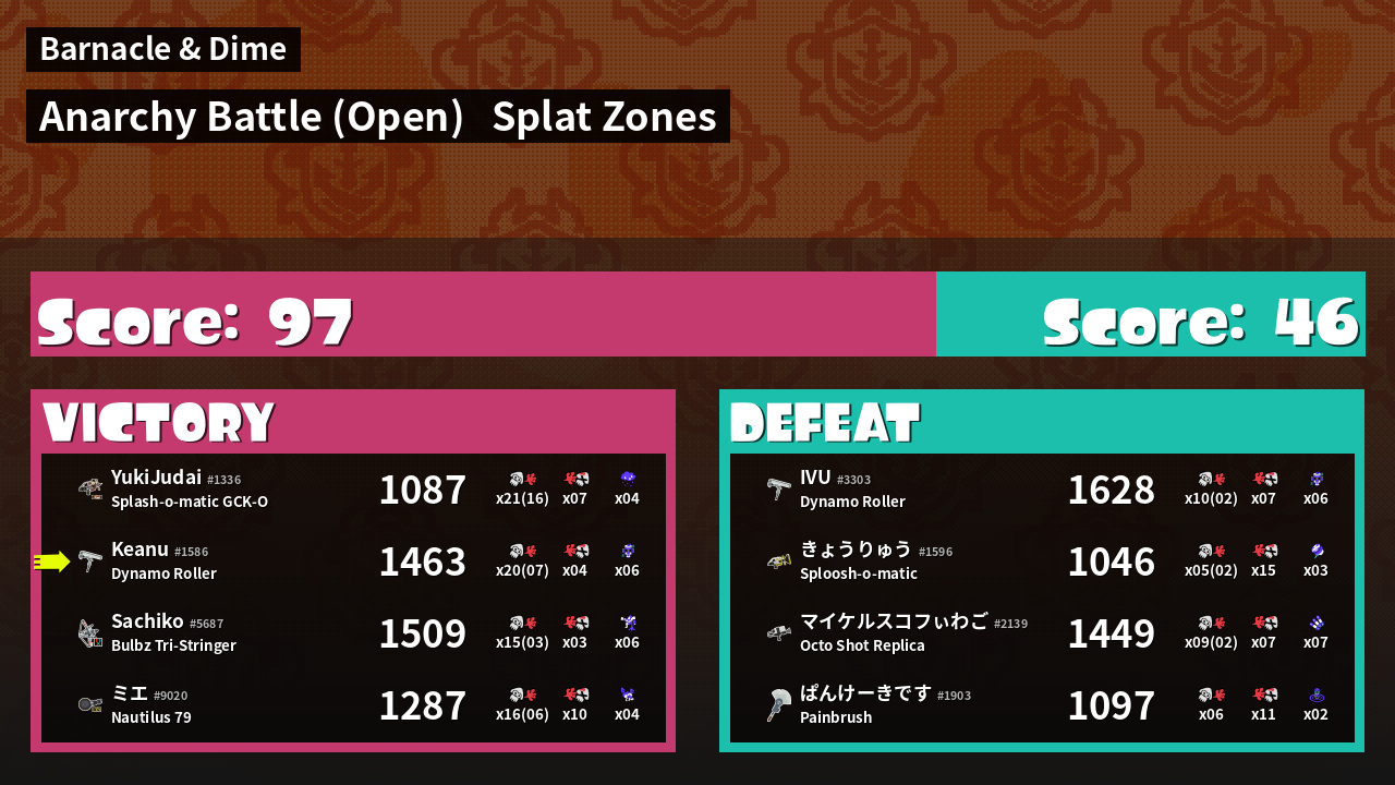 | Mode | Splat Zones - Anarchy Battle (Open) | ||