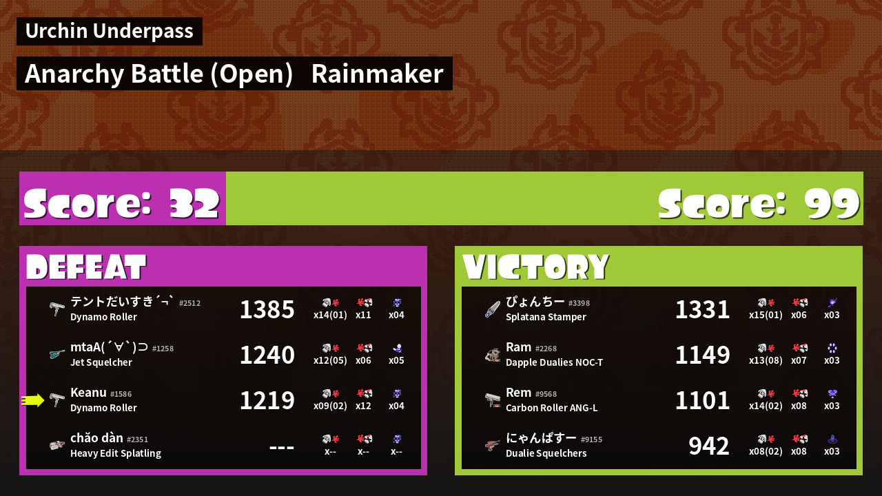 | Mode | Rainmaker - Anarchy Battle (Open) | ||