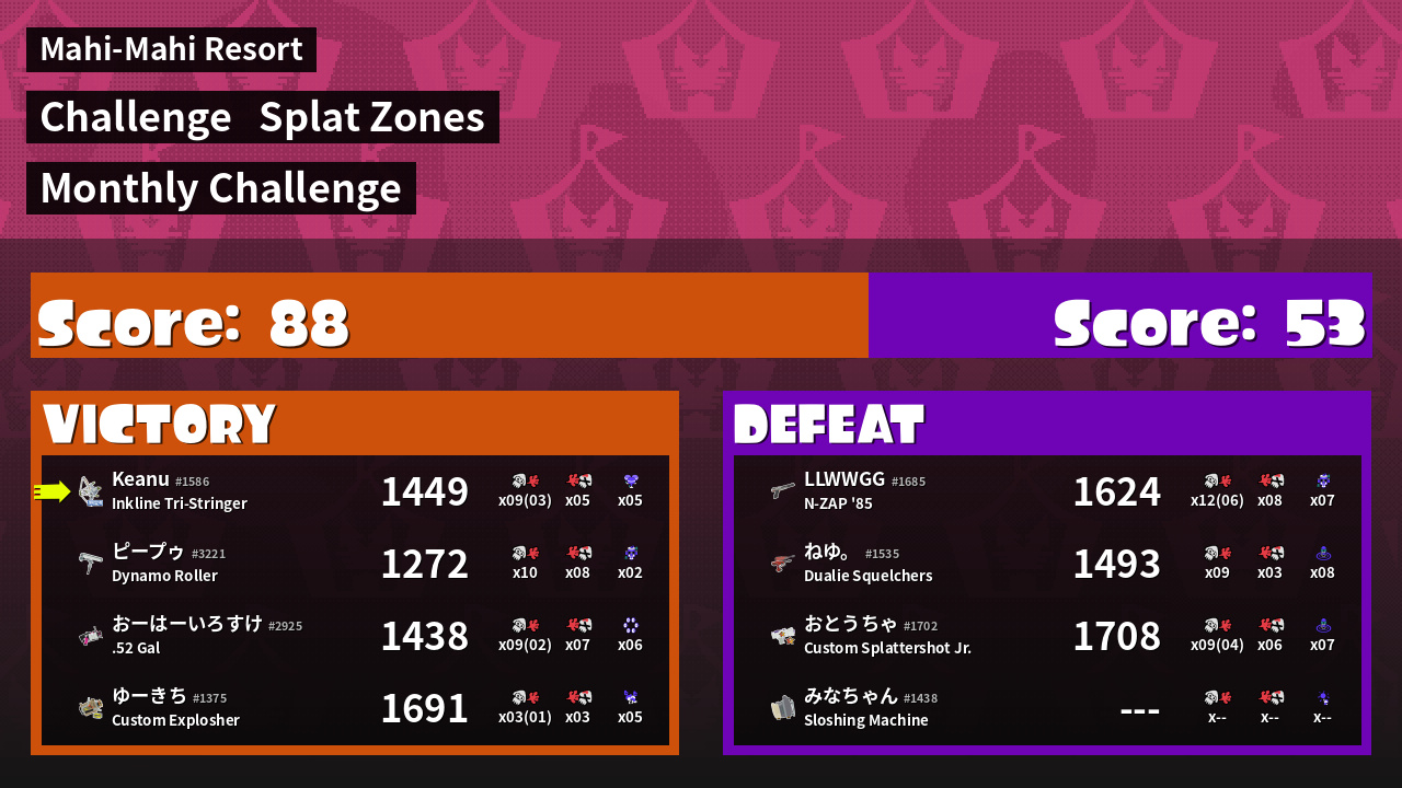 | Medals | #1 Splat Zone Inker #1 Splat Zone Guard #1 Super Jump Spot | ||