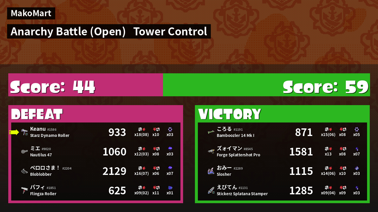| Mode | Tower Control - Anarchy Battle (Open) | ||