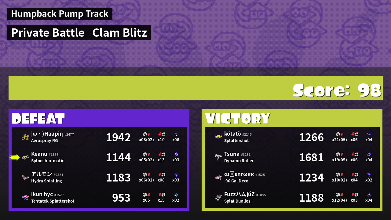 | Medals | #1 Clam Carrier #1 Splat Assister #1 Clam Stopper | ||