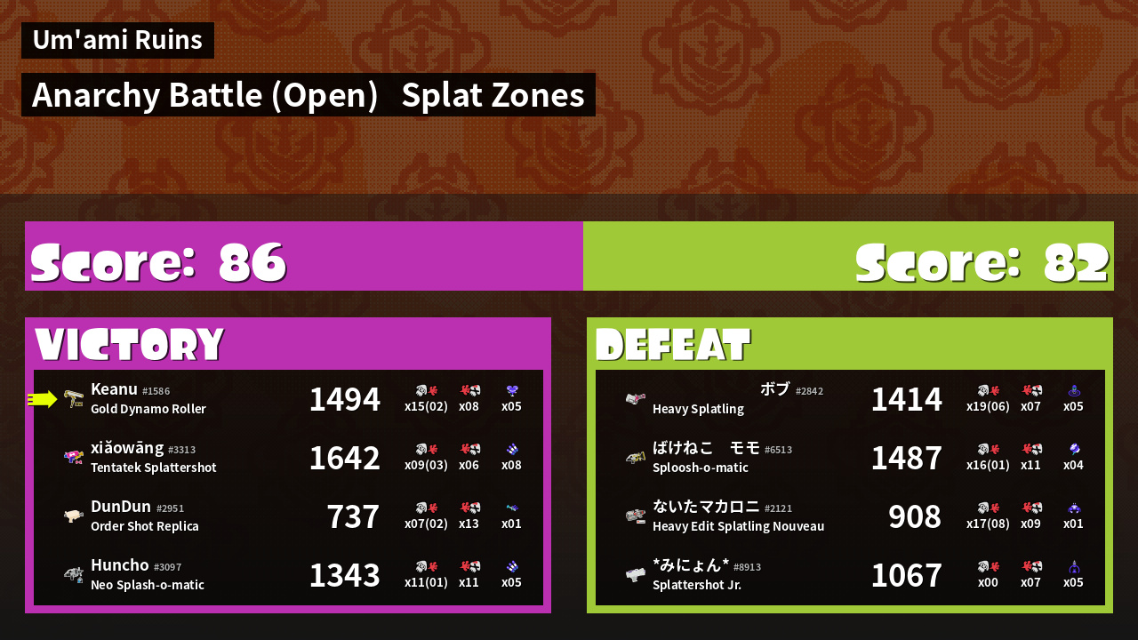 | Mode | Splat Zones - Anarchy Battle (Open) | ||