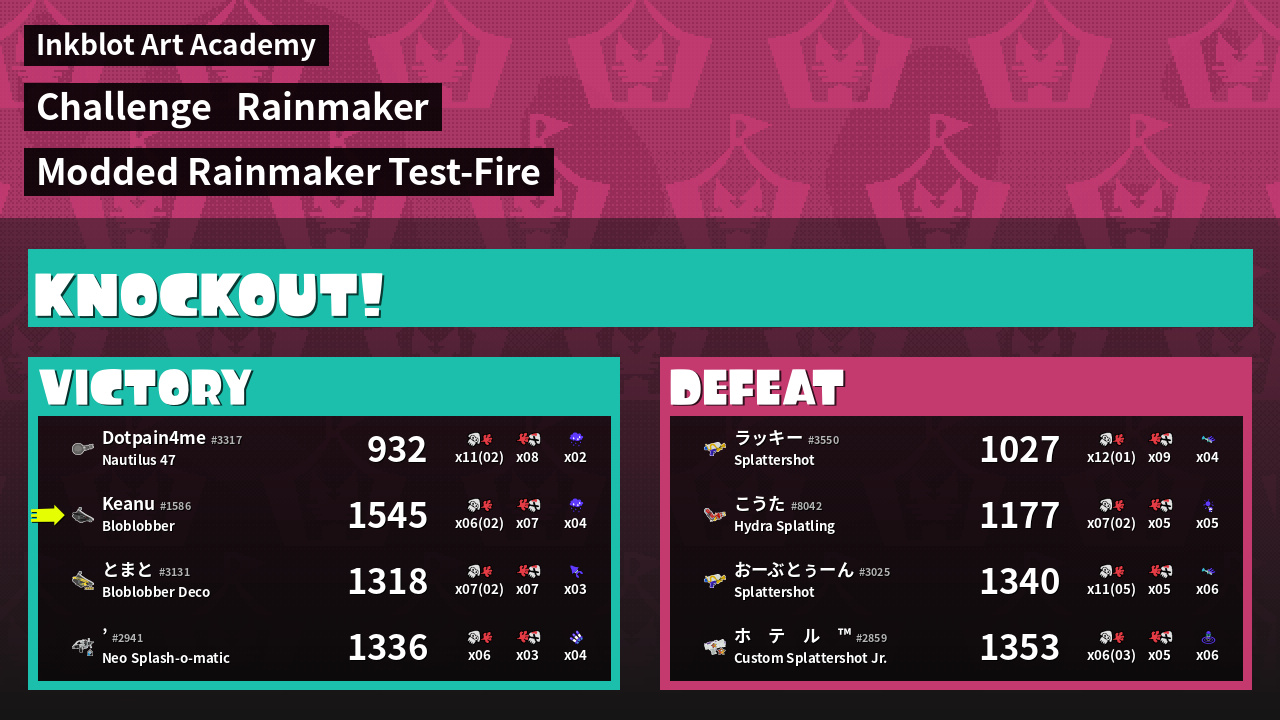 | Medals | #1 Turf Inker #1 Splat Assister #1 Checkpoint Breaker | ||