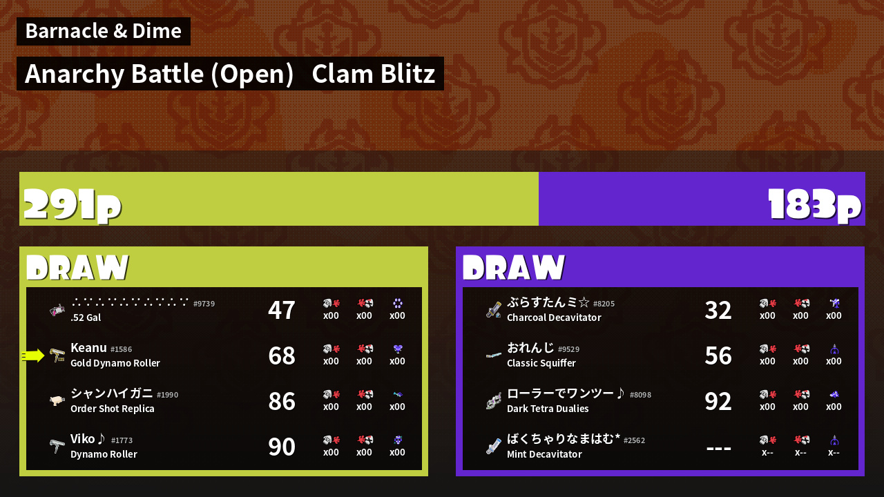| Mode | Clam Blitz - Anarchy Battle (Open) | ||