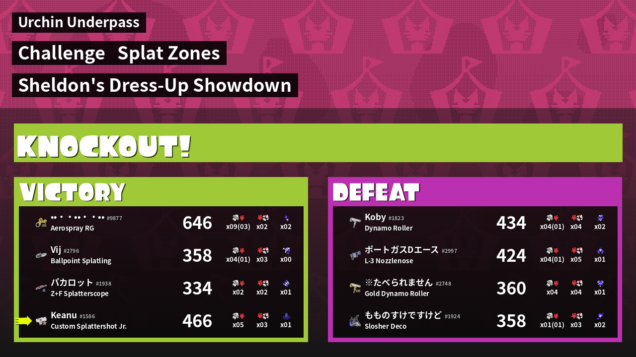| Medals | #1 Damage Taker #1 Ink Consumer #1 Wave Breaker User | ||