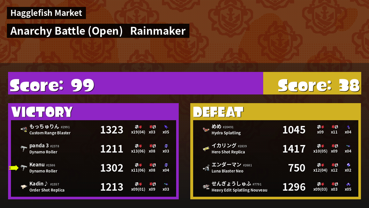 | Mode | Rainmaker - Anarchy Battle (Open) | ||