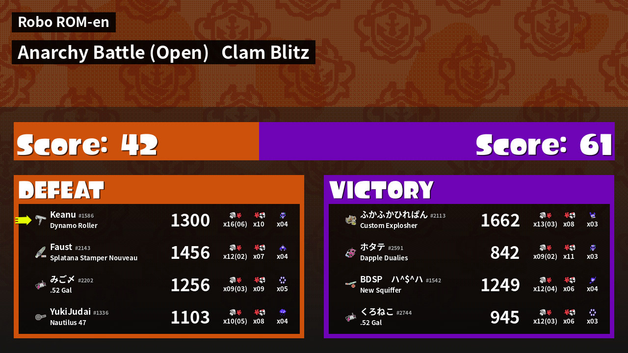 | Mode | Clam Blitz - Anarchy Battle (Open) | ||