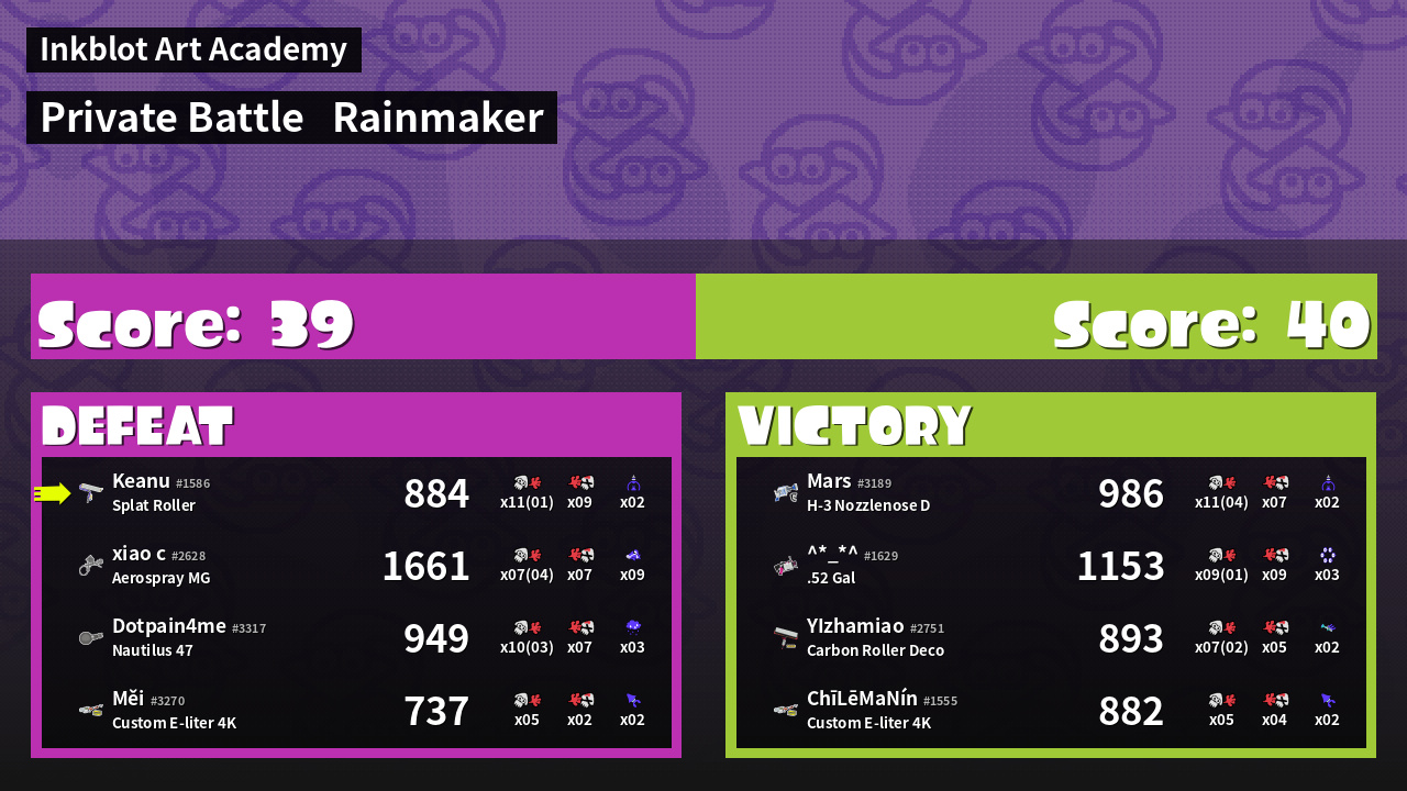 | Medals | #1 Overall Splatter #1 Score Booster Record-Score Setter | ||
