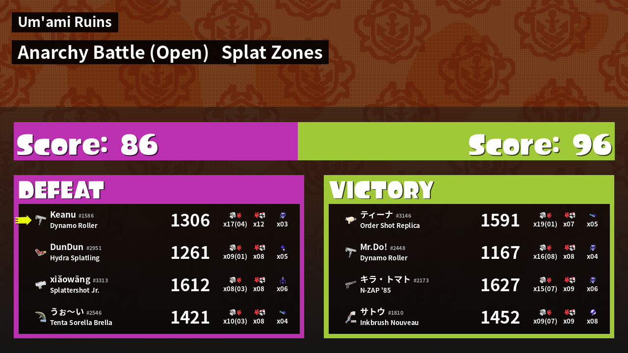 | Mode | Splat Zones - Anarchy Battle (Open) | ||