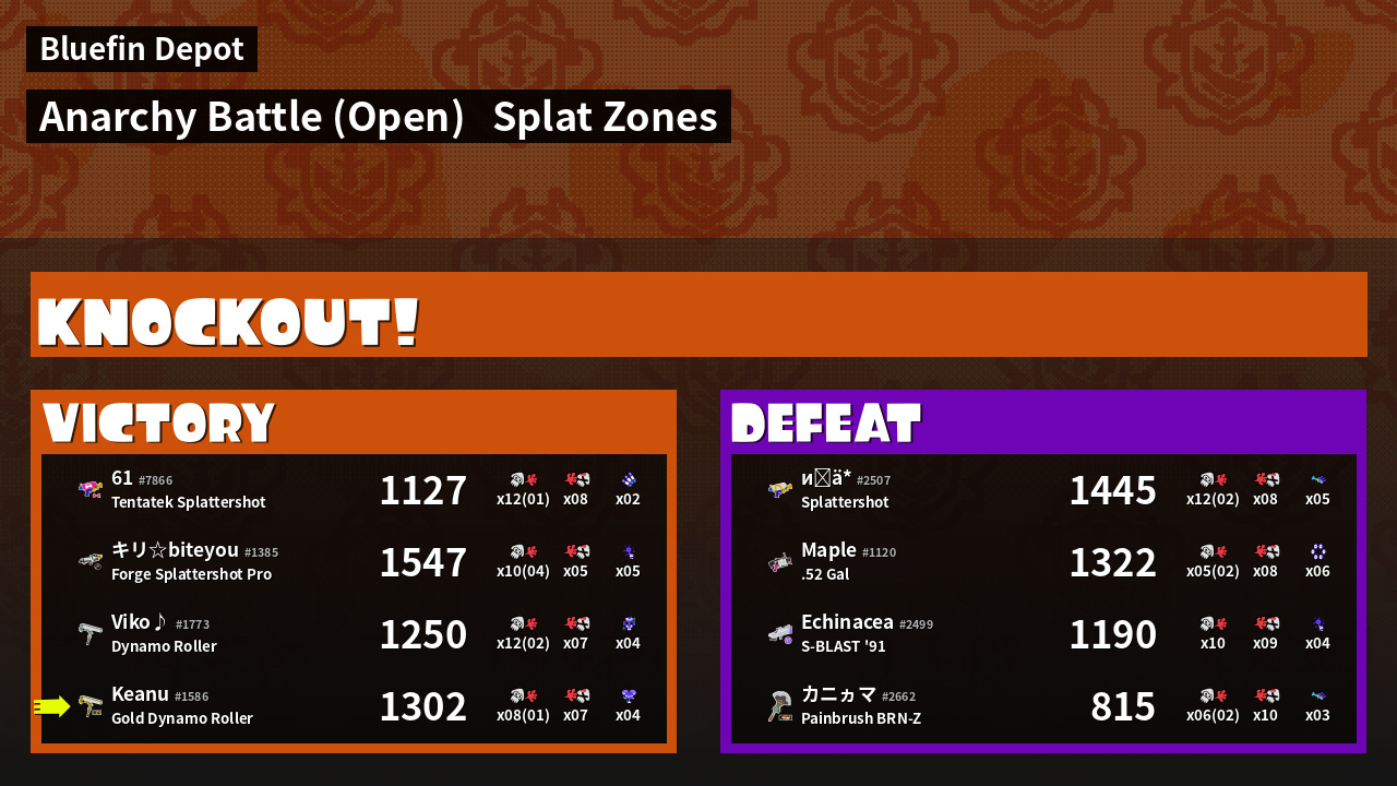 | Mode | Splat Zones - Anarchy Battle (Open) | ||