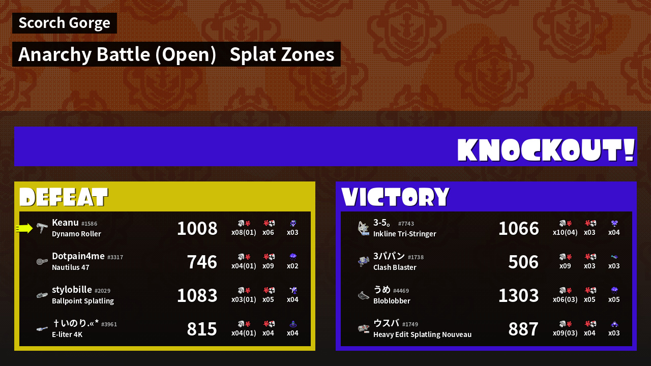 | Mode | Splat Zones - Anarchy Battle (Open) | ||