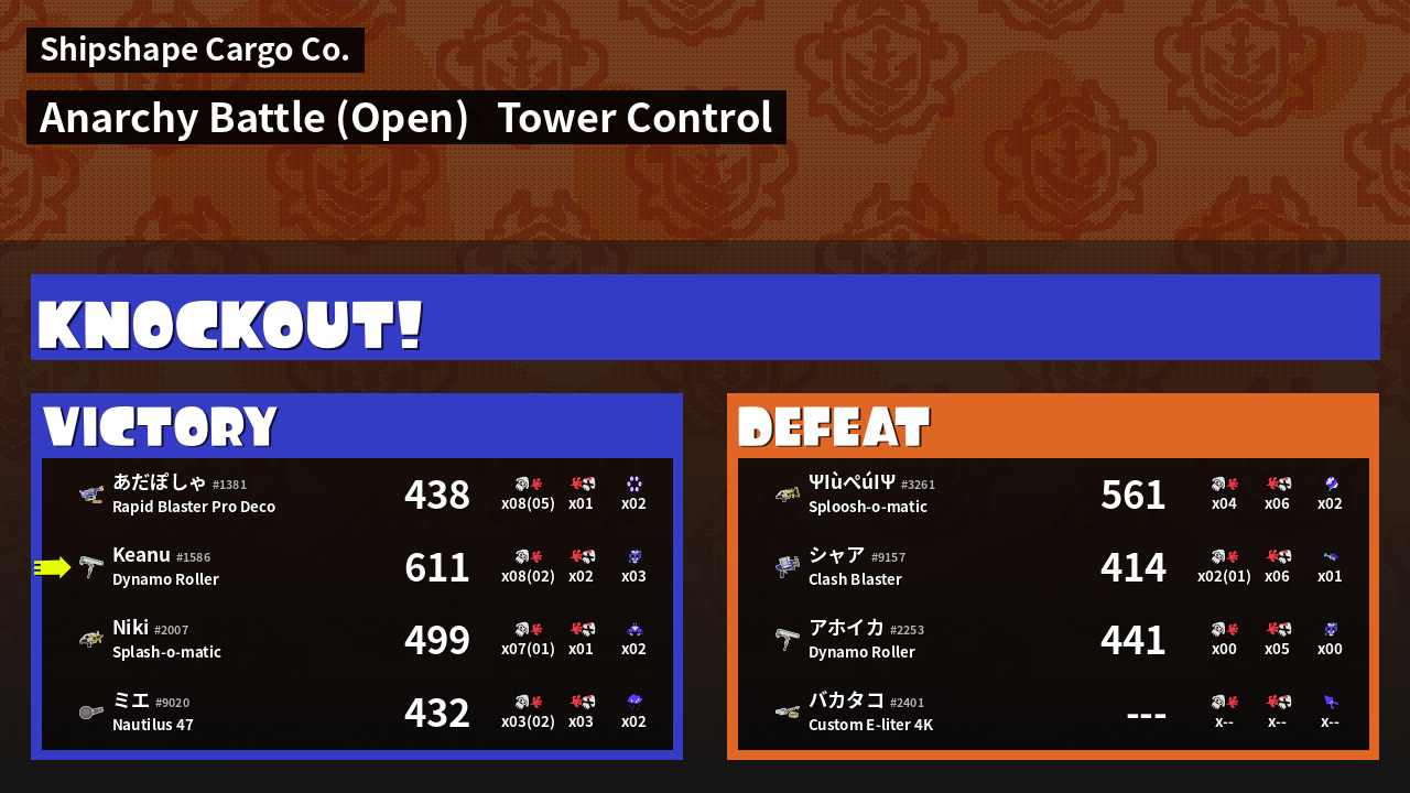 | Mode | Tower Control - Anarchy Battle (Open) | ||