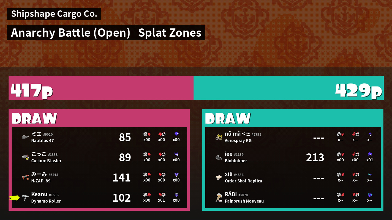| Mode | Splat Zones - Anarchy Battle (Open) | ||