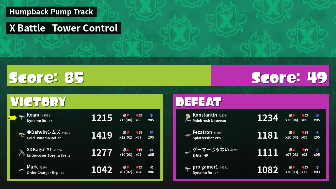 | Weapon | Dynamo Roller ( Sprinkler / Tacticooler) | ||