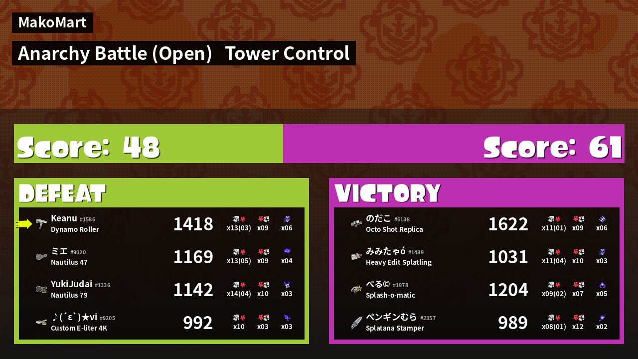 | Mode | Tower Control - Anarchy Battle (Open) | ||
