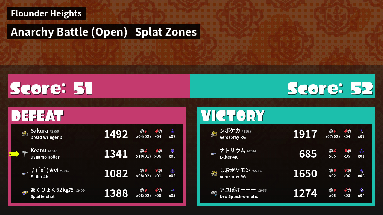 | Mode | Splat Zones - Anarchy Battle (Open) | ||