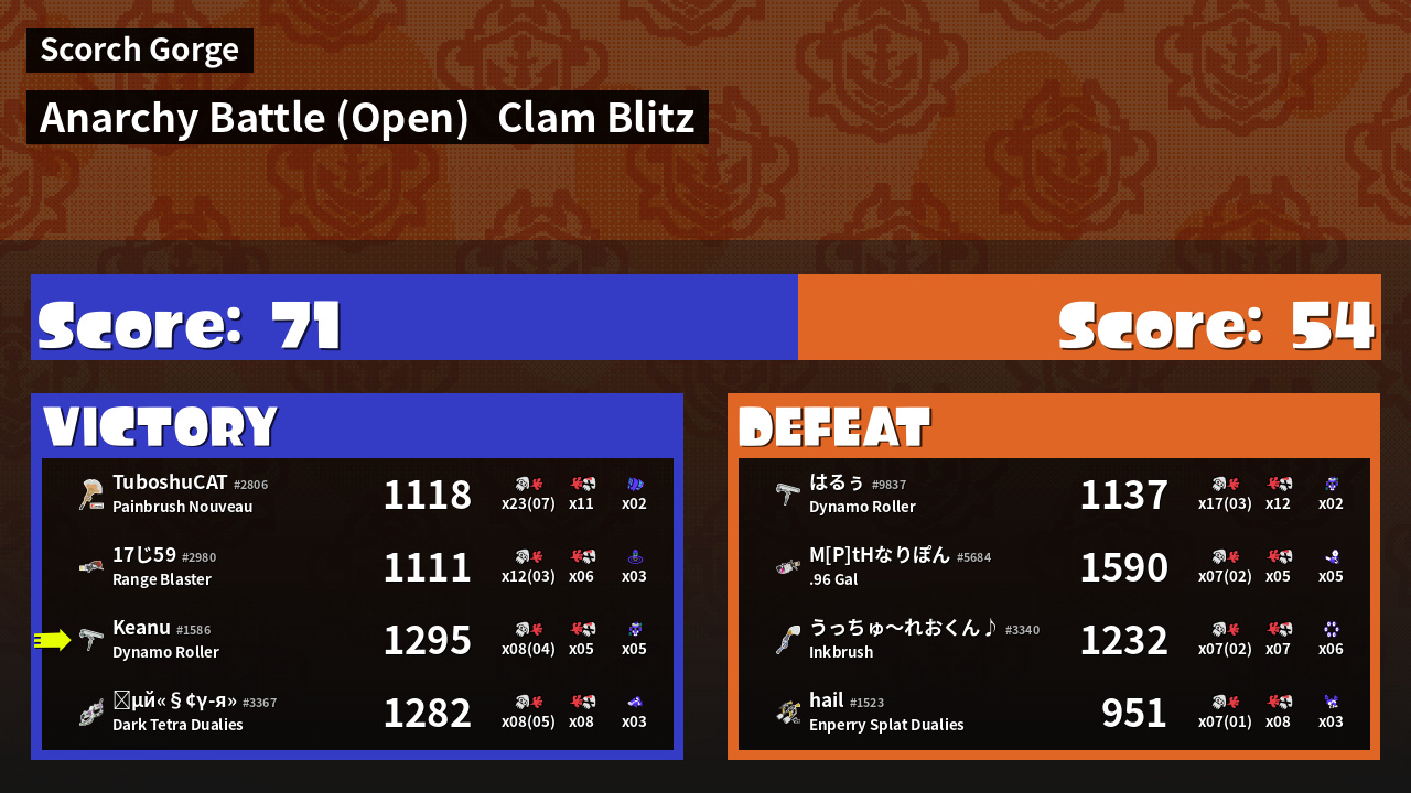 | Mode | Clam Blitz - Anarchy Battle (Open) | ||