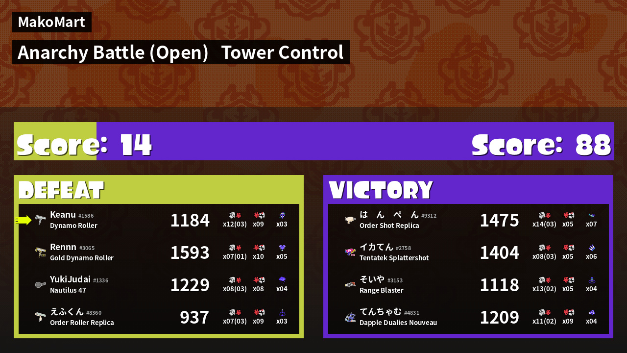 | Mode | Tower Control - Anarchy Battle (Open) | ||