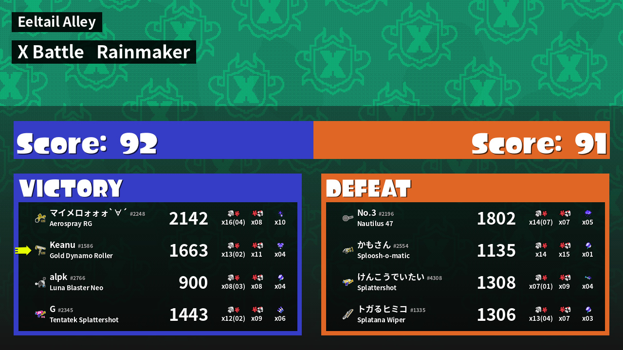 | Weapon | Gold Dynamo Roller ( Splat Bomb / Super Chump) | ||