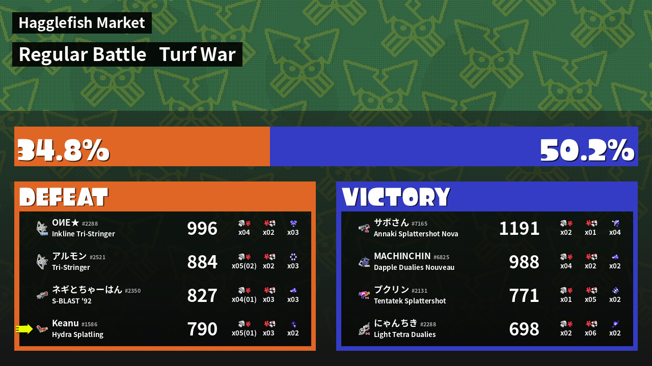 | Medals | #1 Overall Splatter #1 Enemy Splatter First Splat! | ||