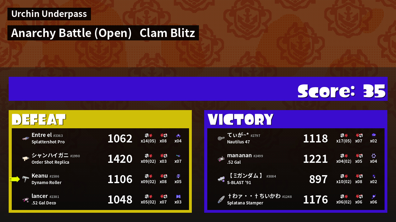 | Mode | Clam Blitz - Anarchy Battle (Open) | ||