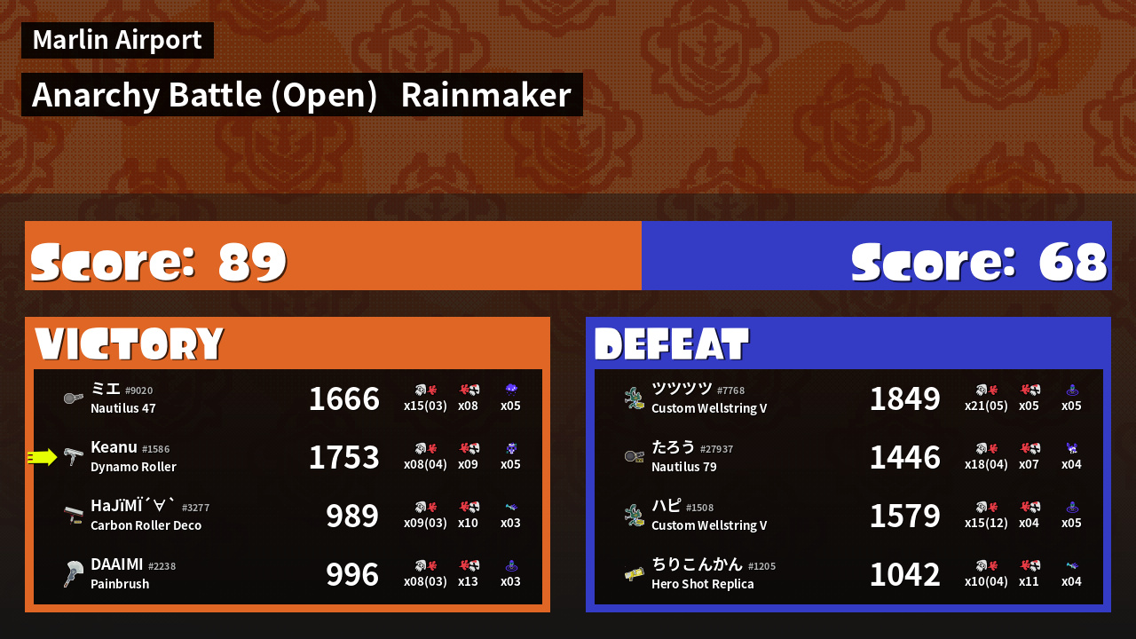 | Mode | Rainmaker - Anarchy Battle (Open) | ||