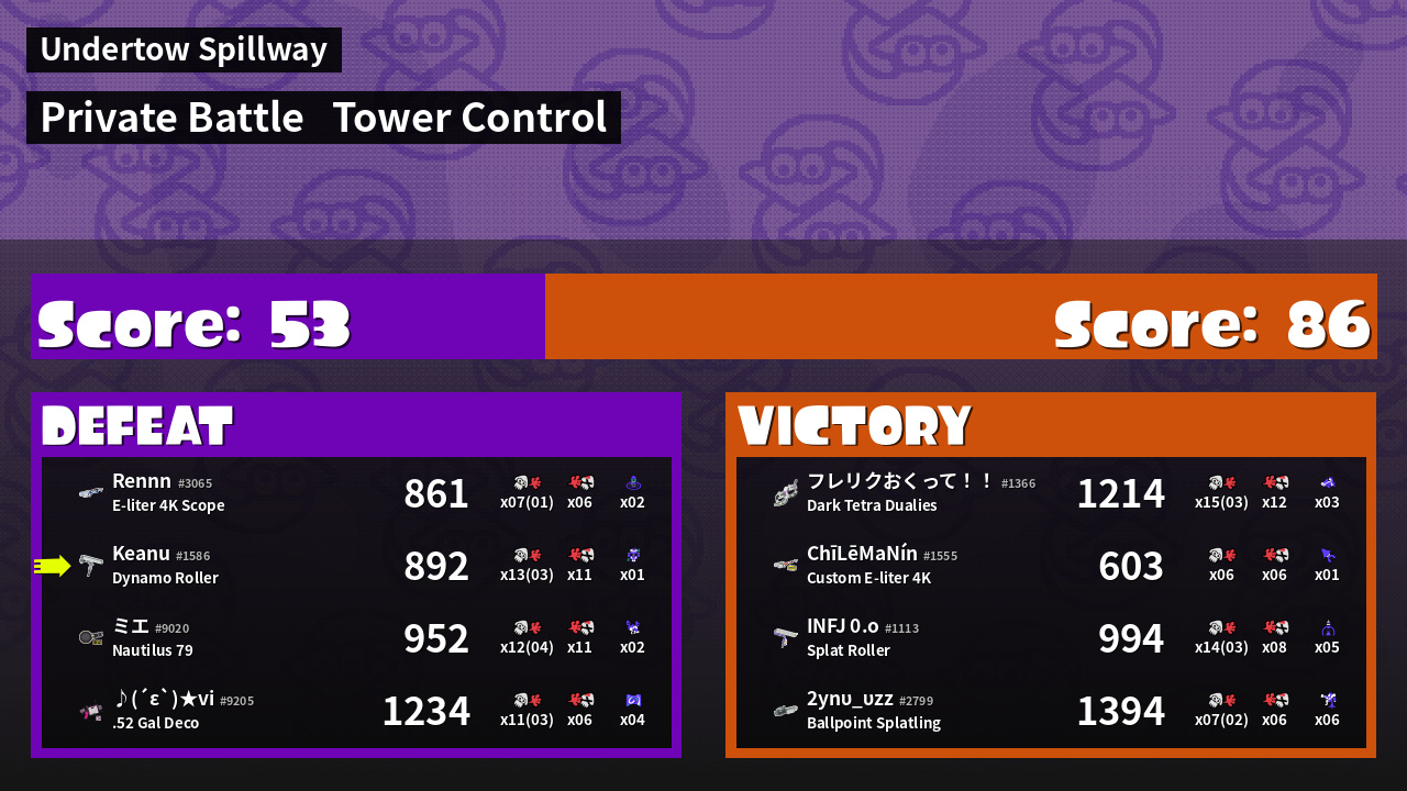 | Medals | #1 Overall Splatter #1 Enemy Splatter #1 Tower Stopper | ||