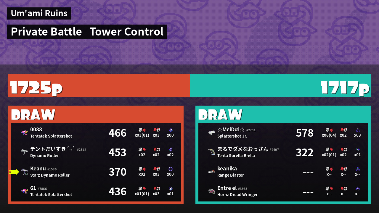 | Weapon | Starz Dynamo Roller ( Point Sensor / Killer Wail 5.1) | ||