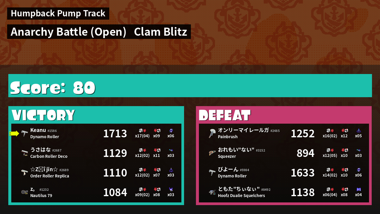 | Mode | Clam Blitz - Anarchy Battle (Open) | ||