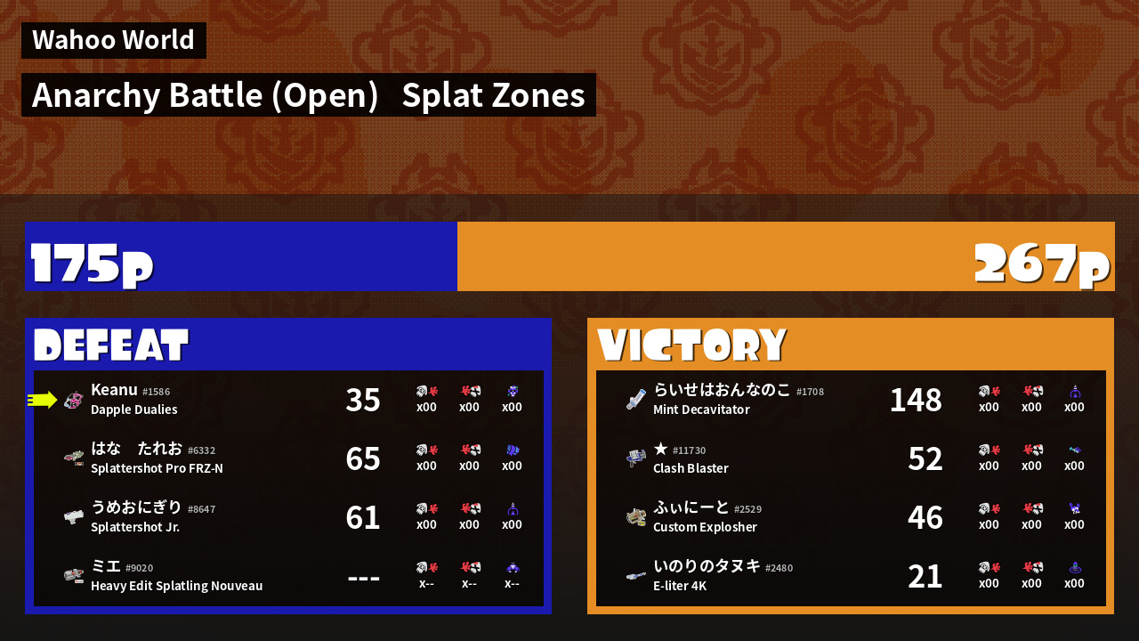| Mode | Splat Zones - Anarchy Battle (Open) | ||