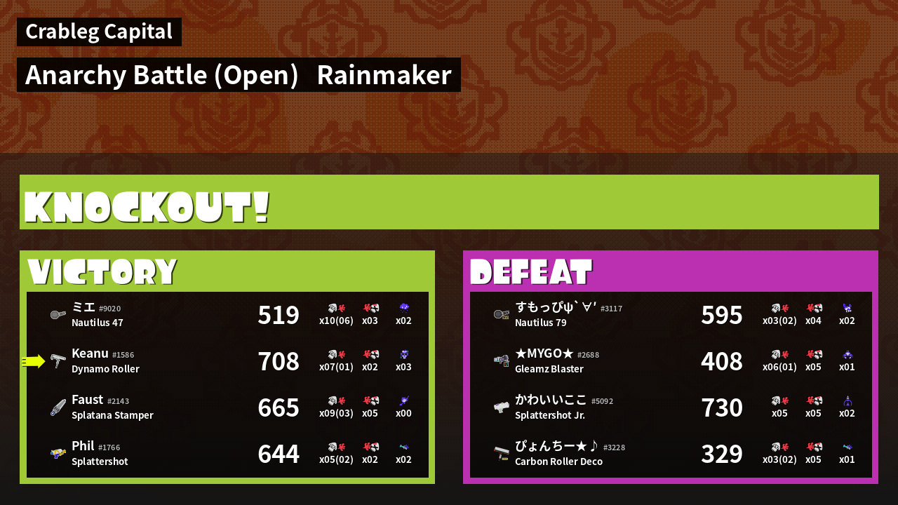 | Mode | Rainmaker - Anarchy Battle (Open) | ||