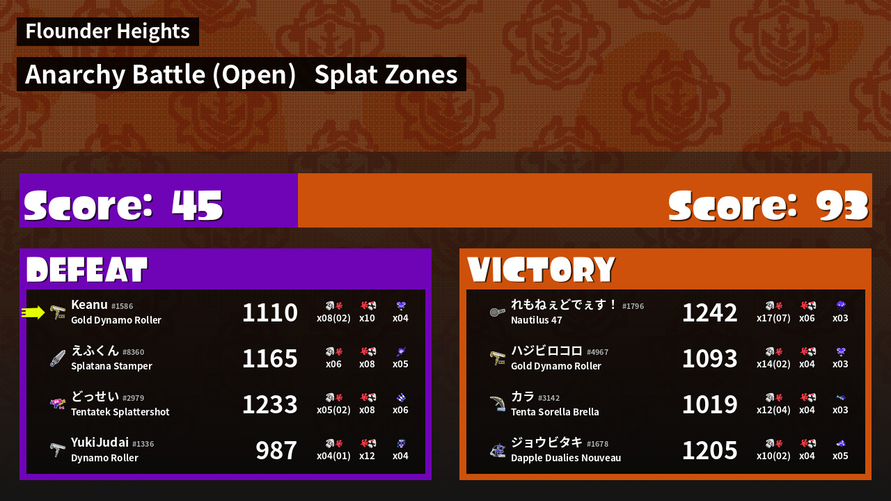 | Mode | Splat Zones - Anarchy Battle (Open) | ||