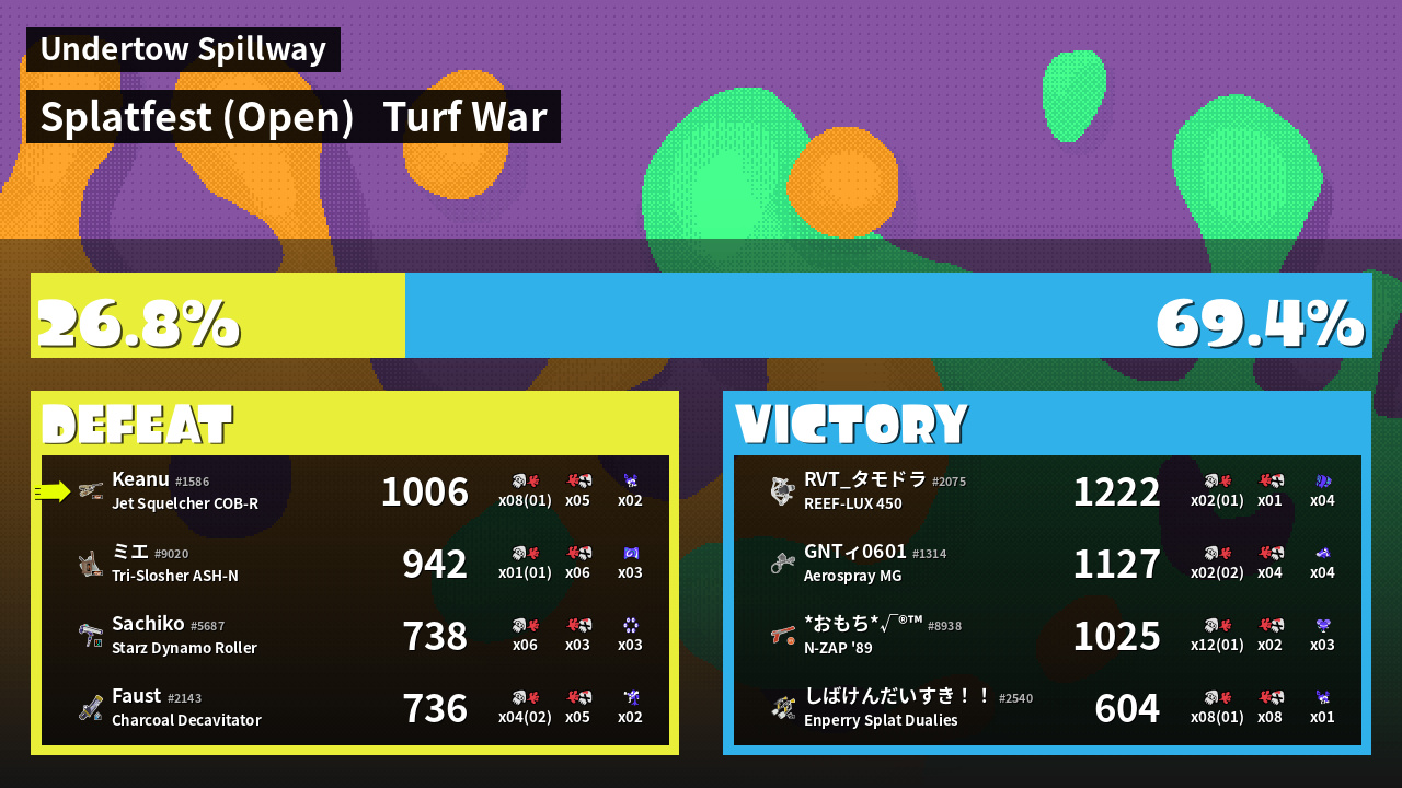 | Medals | #1 Overall Splatter #1 Turf Inker #1 Enemy Splatter | ||