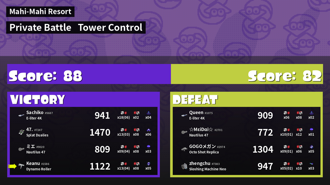 | Medals | #1 Tower Stopper #1 Damage Taker #1 Ink Consumer | ||